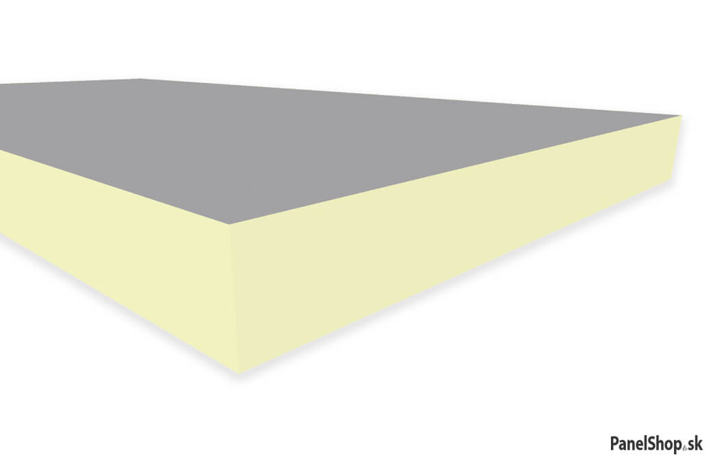 PIR panel made of double-sided mineral fleece (MW). The core of the panel is made of hardened PIR polyisocyanurate foam.