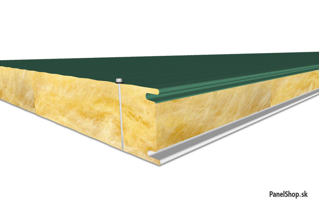The sandwich panel consists of two colored, galvanized, profiled steel sheets and mineral wool filling. The thickness of the sheets can be from 0.5 mm to 0.7 mm. TBy default, the sheet thickness is 0.5/0.5mm with a 25/15μ surface treatment. The panels are anchored with a visible joint. Very high fire resistance and sound insulation.